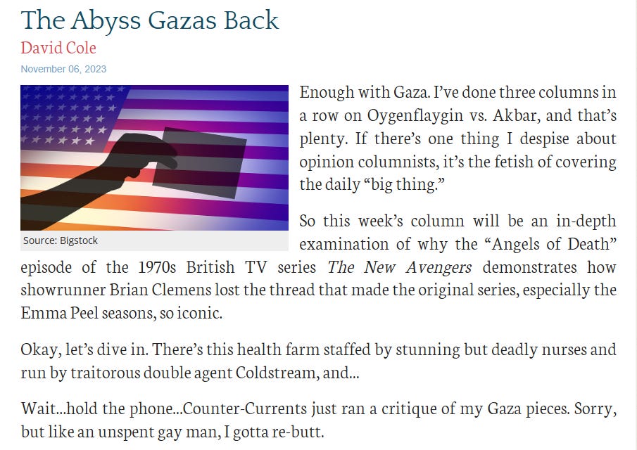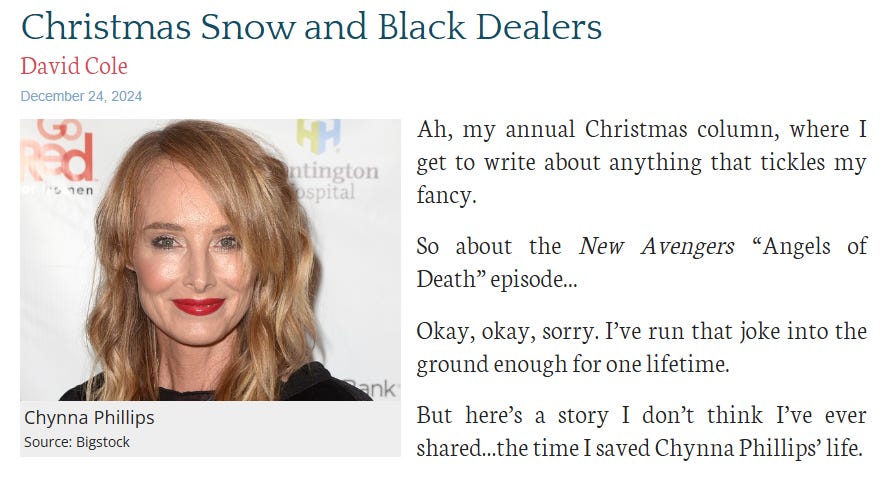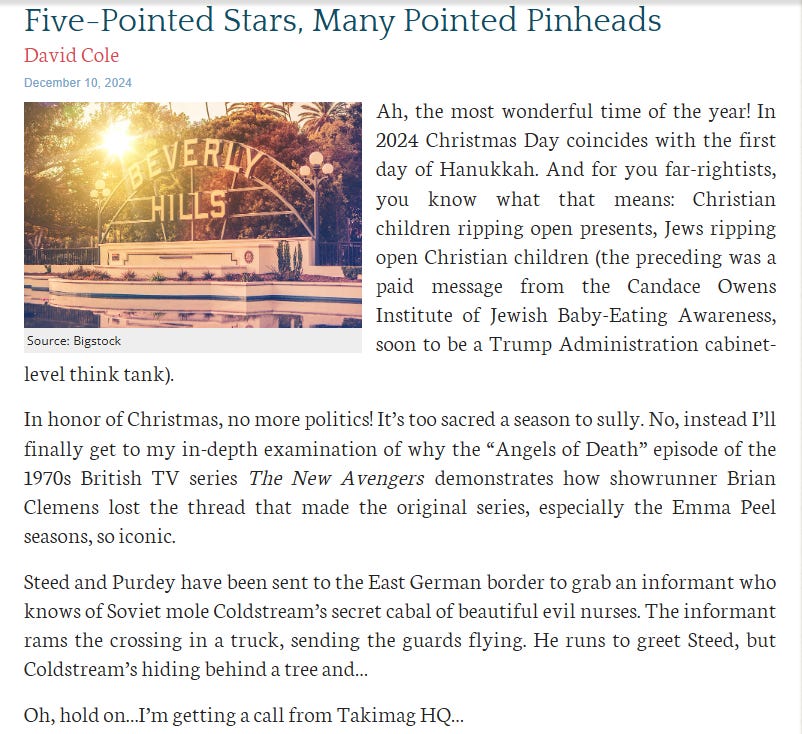 Anyway, do your unsubs now. Next week: why the “Angels of Death” episode of The New Avengers was a low point for 1970s British spy shows.